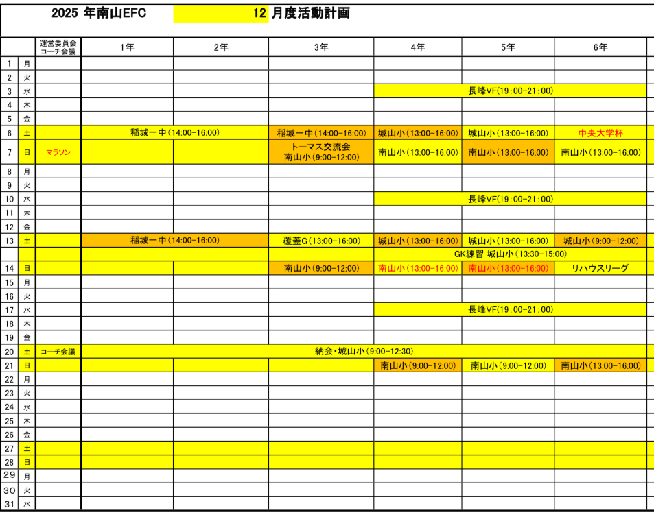 2025年12月の活動予定